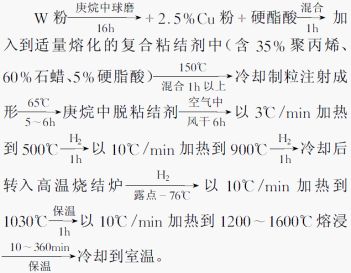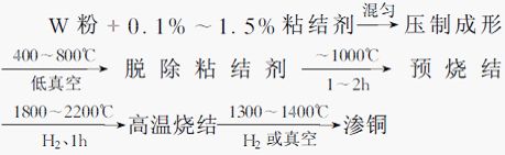 高溫?zé)Y(jié)鎢骨架法的典型工藝如下: